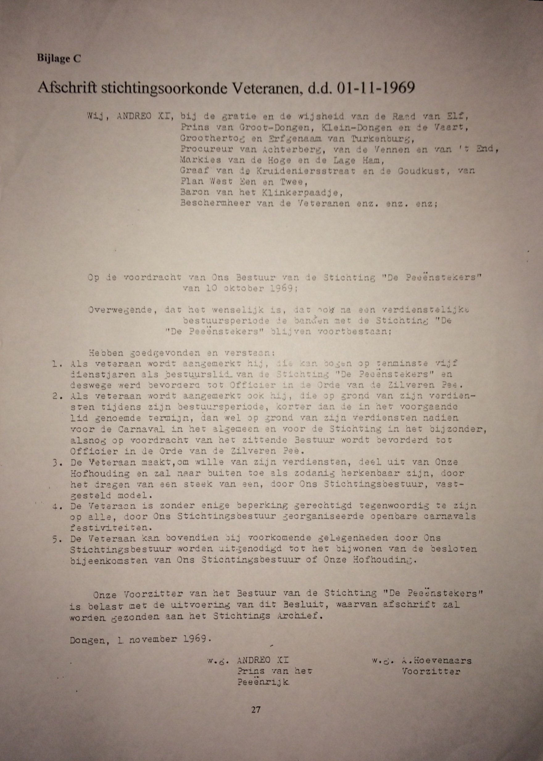 In het carnavalsjaar zijn Sjef Lieshout, Kees Kuppens, Harry Lucas en Wim Lourijsen, in een open Amerikaanse slee, hun raadspak met gouden kragen aan, met aparte steken, als Veteranen aan de optocht mee gaan doen.